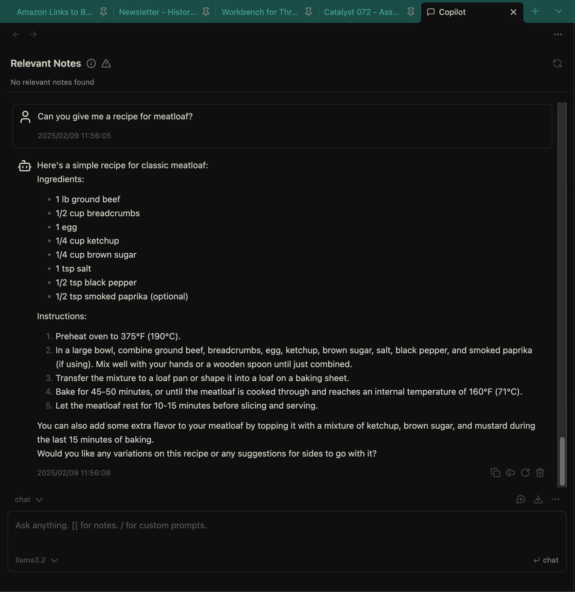 I'm not sure why a recipe for meatloaf is the prompt that came to my head to show you an example. Although, now that I've done this, I could see it being cool to use in my personal Obsidian vault...