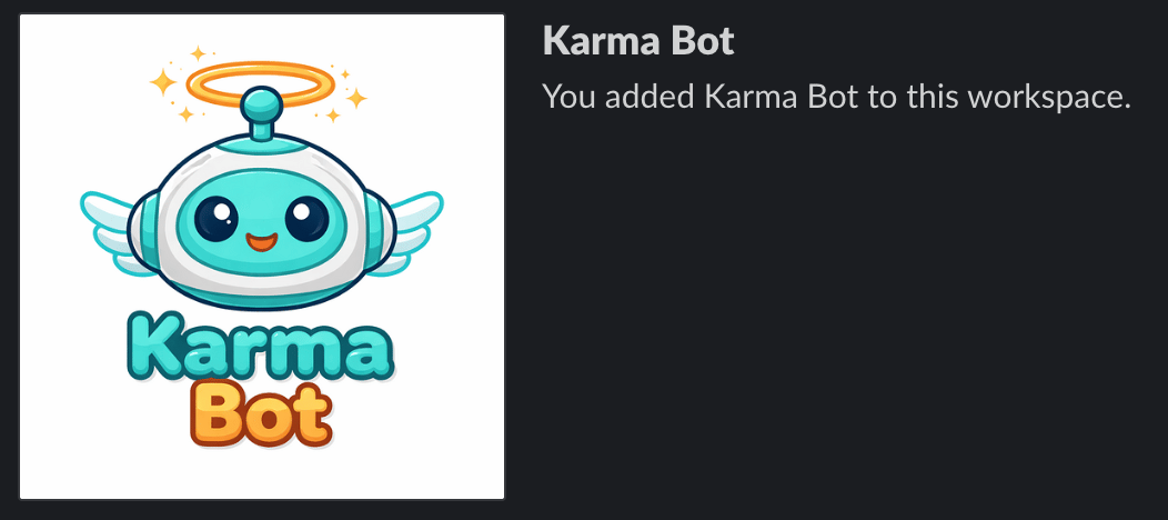 My karma bot in my Slack instance! Logo done by AI, too.
