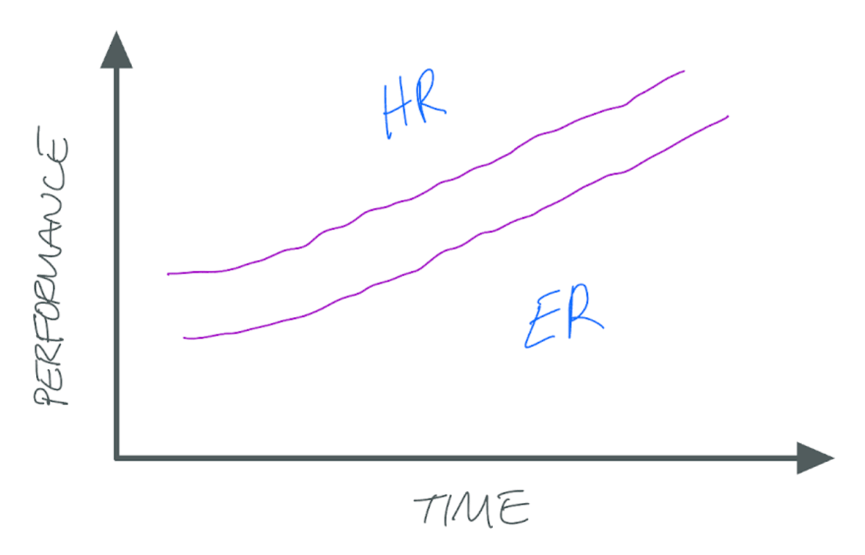 If performance goes above the channel, you’ve got an over-performer on your hands. Typically that’s great! You just need to continue to find challenges for them (and budget 🤑). This is typically when you’ll spend more time with Human Resources (HR).