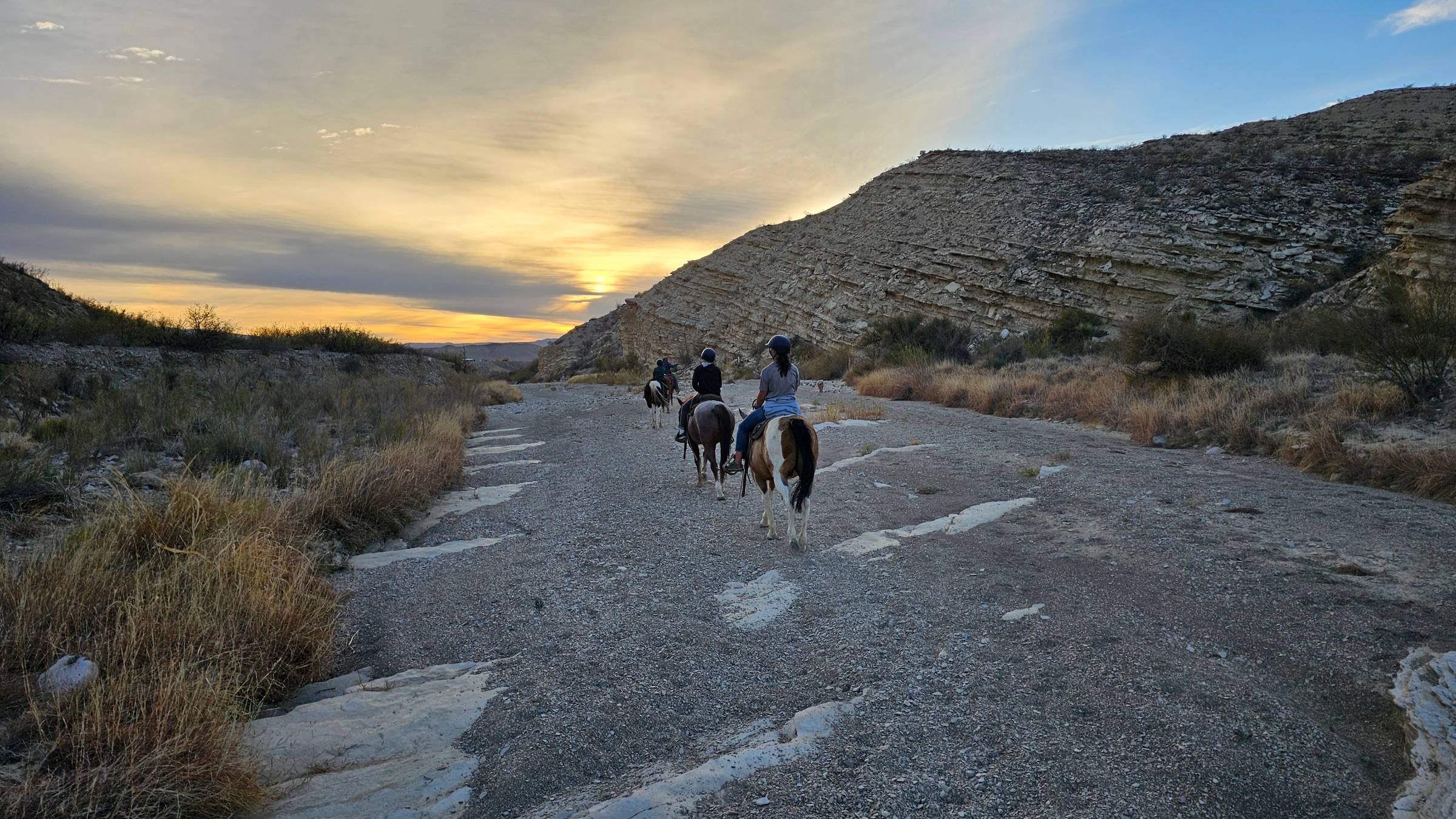 Horse ride at sunset.